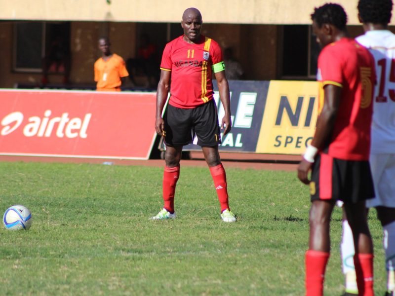 MAIN PHOTO: Uganda Cranes captain Geofrey Massa prepares himself to take a set piece during the international build up match against Kenya on Tuesday, 30th August 2016