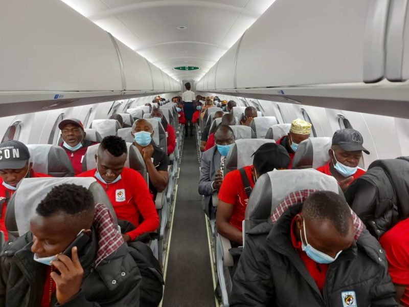 The team safely traveled aboard Uganda Airlines Bombardier to South Africa on Tuesday morning before they checked in at Protea Hotel Roodepoort in Johannesburg.
