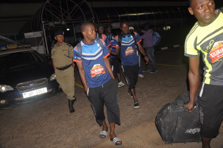 The team of 30 (20 players and 10 officials) arrived at Entebbe International Airport at 9:55 p.m aboard Rwanda Airways from Kigali on flight WB 420.