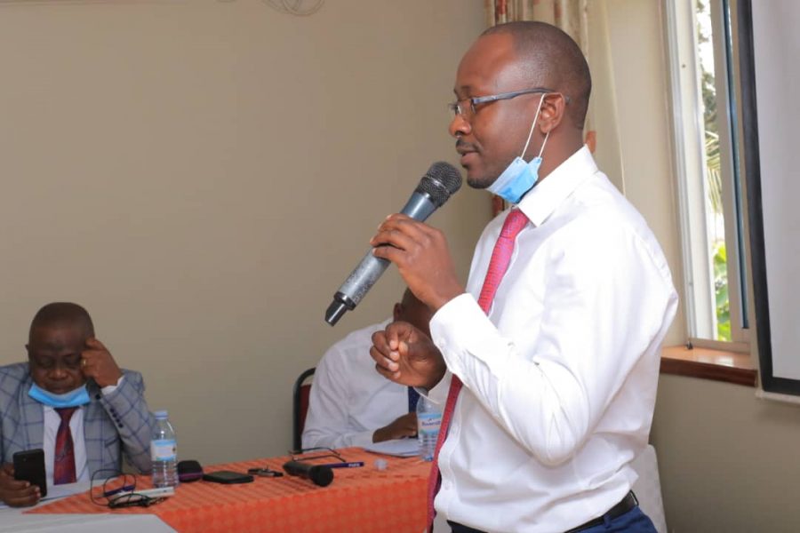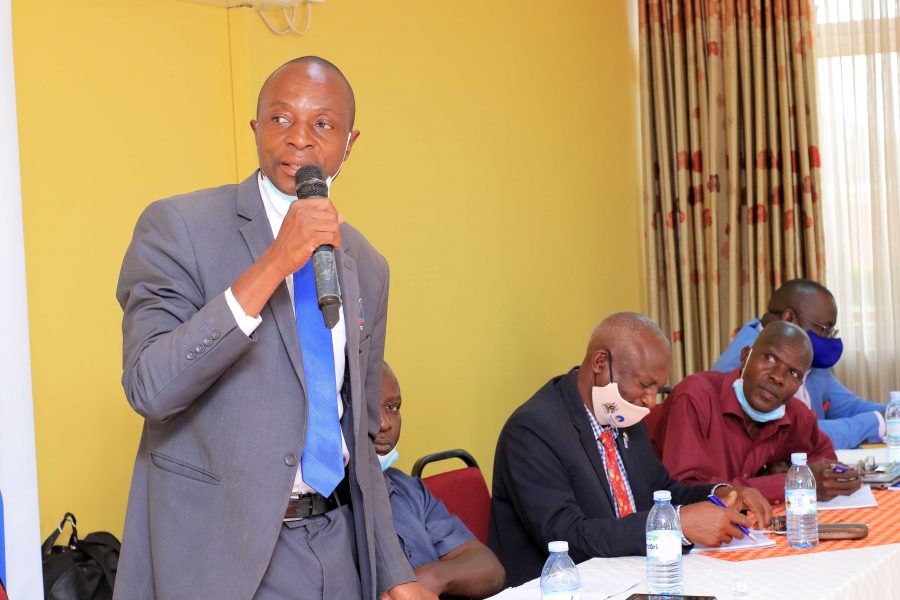 FUFA 1st Vice President Justus Mugisha contributing during the Orientation session