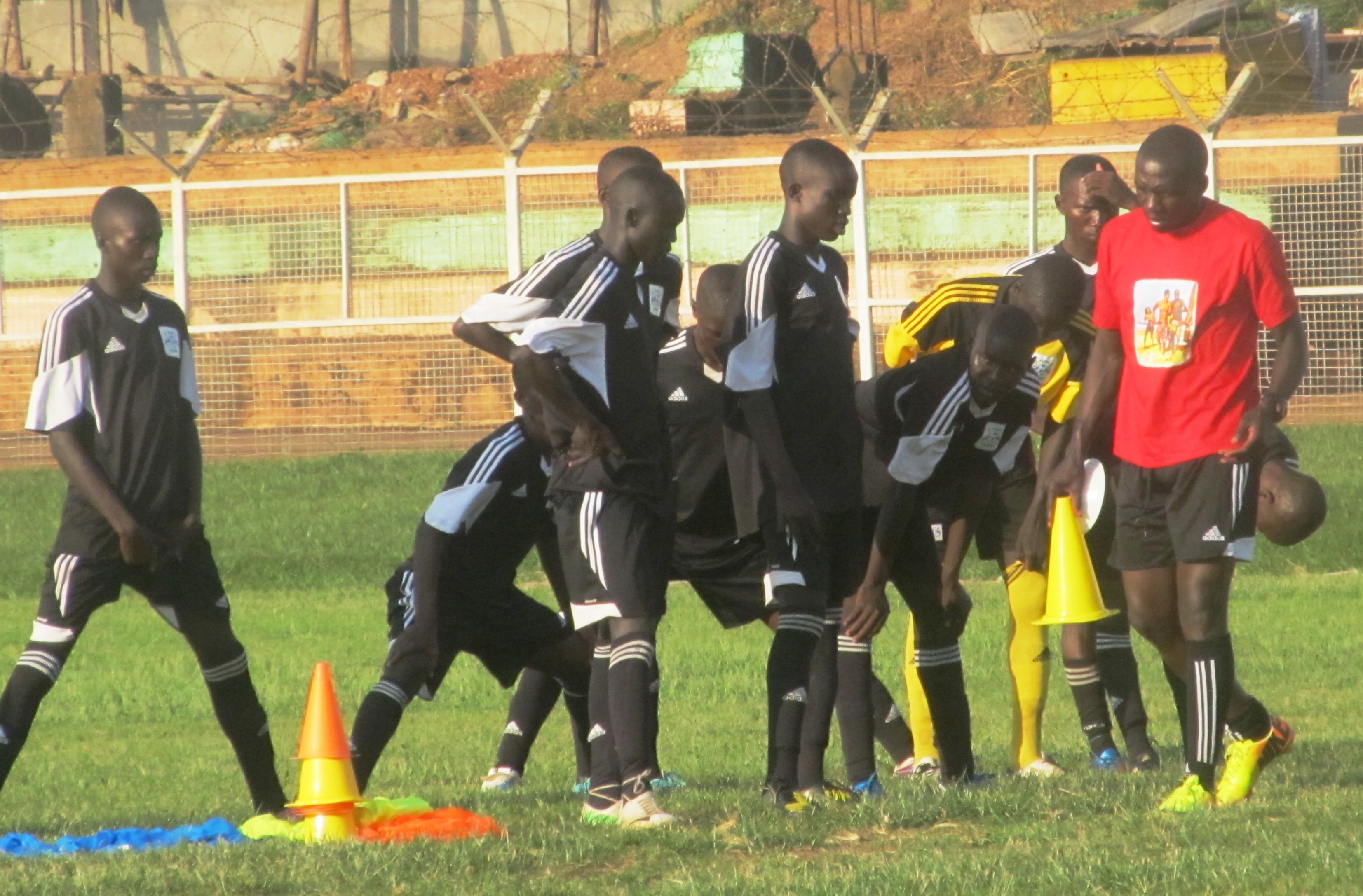 Main Photo: Uganda Cubs players sing after the Tuesday afternoon session at Namboole Stadium.