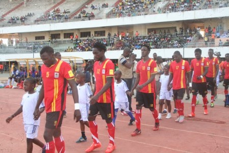 MAIN PHOTO: Uganda Cranes players walk to the field of play in a previous match