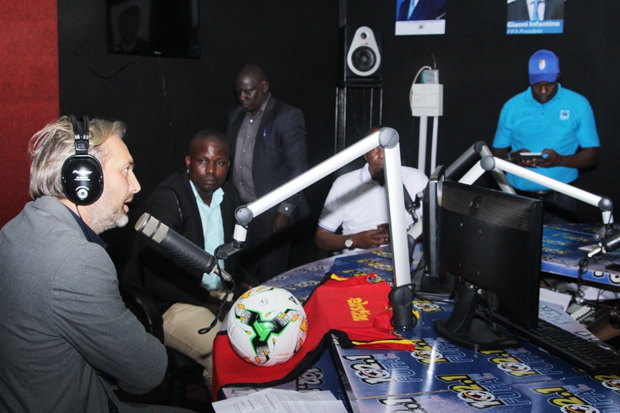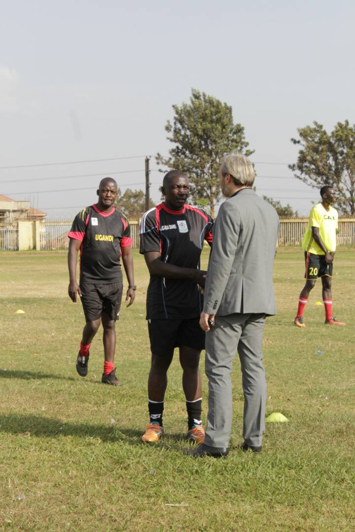 Sebastien Desabre is greeted by the Minister of Sports and Education Hon. Janet Museveni at RwakituraFirst radio Interview in Uganda: Coach Desabre in the studios of 102.1 FUFA fm after he was unveiled on 28th December 2017First ever Press conference to unveil his plans: L-R: Ahmed Hussein (FUFA Communications Manager), FUFA President Eng. Moses Magogo, Sebastien Desabre and FUFA CEO Edgar Watson during a press conference at FUFA House in Mengo.Desabre meets his assistant Mathias Lule on the day he was unveiled as head coach at Namboole stadium outer pitch.The unveiling of the new coach drew a mammoth crowd of journalists from the different media housesThe FUFA President Eng. Moses Magogo with the Uganda Cranes head coach Sebastien Desabre at the country home of President Museveni in RwakituraSebastien Desabre with his luggage at Entebbe International Airport prior an international duel as the Cranea flew out to Morocco for CHAN FinalsUganda Cranes head coach Sebastien Desabre during the post match press conference at the CHAN 2018 tournament in MoroccoUganda Cranes head coach Sebastien Desabre in Morocco during CHAN Finals in the team’s dressing room. Smartness is part of his menu.Uganda Cranes head coach Sebestien Desabre talks to former Vipers SC head coach Miguel Da Costa during the FUFA UPL Symposium at Serene SuitesDesabre during a training session in MoroccoSebastien Desabre smiles during the press conference held at the 2018 TOTAL CHAN Tournament in MoroccoL-R: Sebastien Desabre, assistant Mathias Lule, stand-in goalkeeping coach Sadiq Wassa and trainer Gerome D’Antonio prior to the match against Malawi during an international friendly match at Namboole.Sebastien Desabre gives instructions to the players during training at Namboole StadiumL-R: Former KCCA Chairperson Julius Kabugo, FUFA President Eng. Moses Magogo and Uganda Cranes head coach Sebastien Desabre celebrate KCCA FC’s CAF Champions League victory at the Star Times Stadium, LugogoUganda Cranes captain on the day Hassan Wasswa Mawanda with the head coach Sebestien Desabre during the post match press conference after an international build up match in NigerFUFA President, Eng. Moses Magogo greets Sebastien Desabre during the pre-matchUganda Cranes head coach Sebastien Desabre addresses the media at the FUFA UPL SymposiumDo it this way: Desabre with Emmanuel OkwiDesabre is always involved during the drillsSebastien Desabre (M) with his assistant Matia Lule and support staff Saidi Lugolobi before the training session in Niger on Tuesday 29th May 2018.