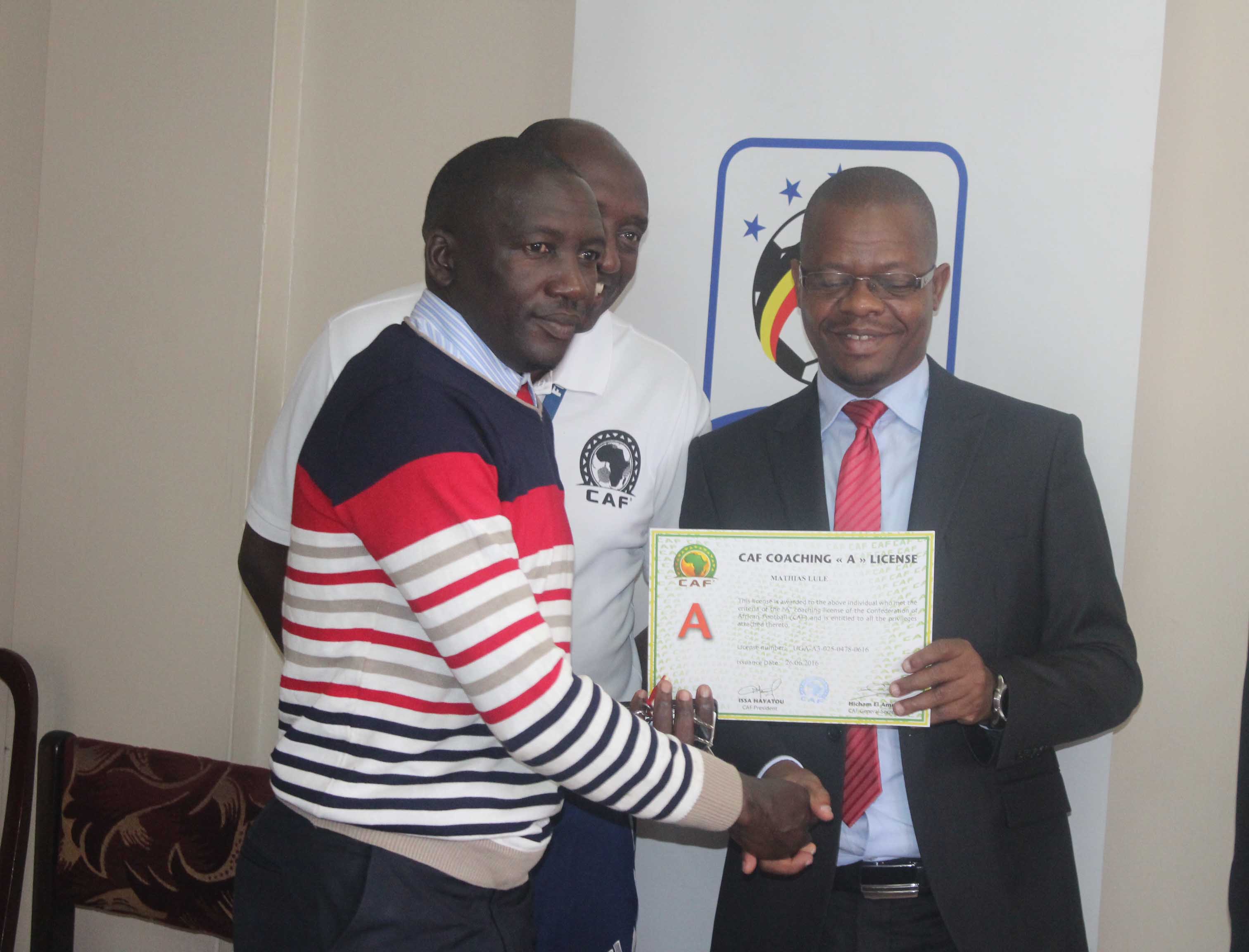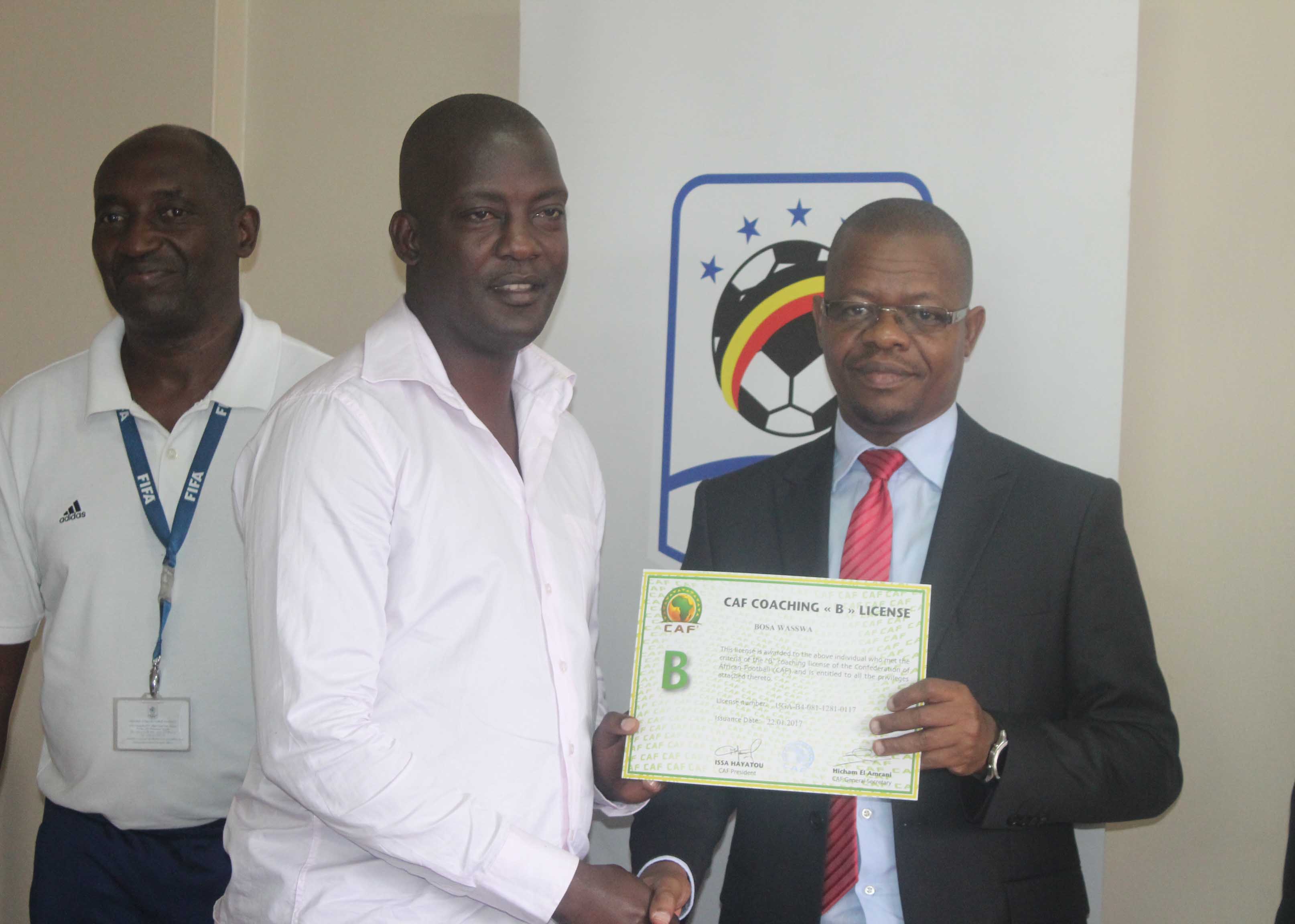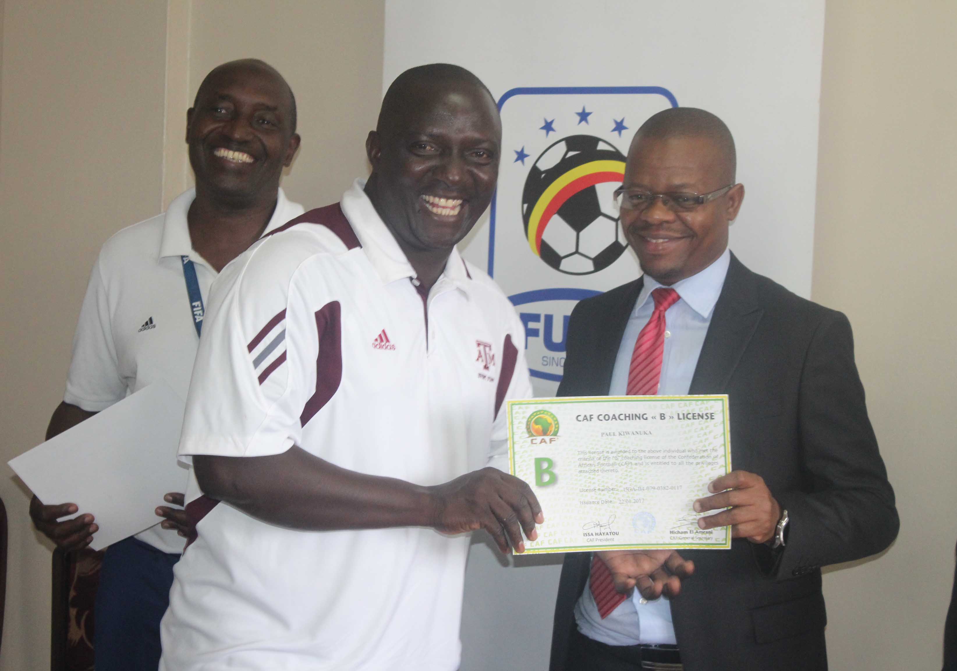 27 coaches were awarded CAF A Licenses while 49 coaches received CAF B licenses at a ceremony graced by FUFA President Eng. Moses Magogo on Tuesday morning at FUFA House, Mengo.