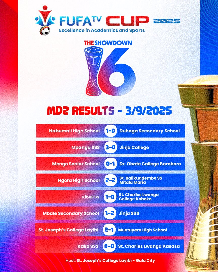 The FUFA Tv Cup 2025 group stage entered its second day at St. Joseph’s College Layibi in Gulu City, producing drama, goals, and decisive results across all groups.