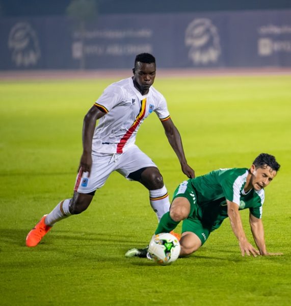 MAIN PHOTO: Khalid Aucho (white) during the game against Turkmenistan on Sunday in Abu Dhabi. He will feature at AFCON for the 2nd successive time together with 11 other players who were in the 2017 Uganda Cranes Squad in Gabon.