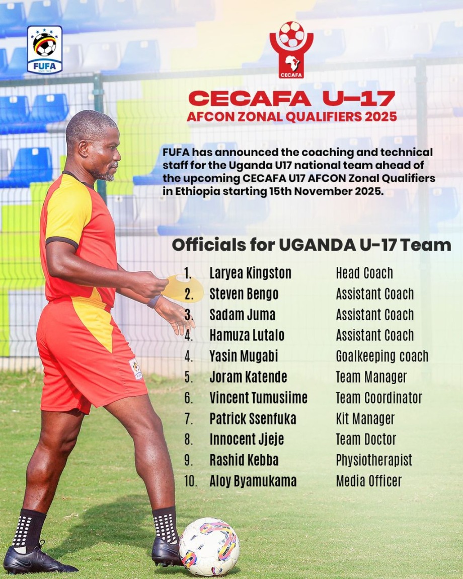 FUFA has confirmed the coaching and technical staff for the Uganda U17 national team ahead of the CECAFA U17 AFCON Zonal Qualifiers scheduled to take place in Ethiopia from 15th November 2025.