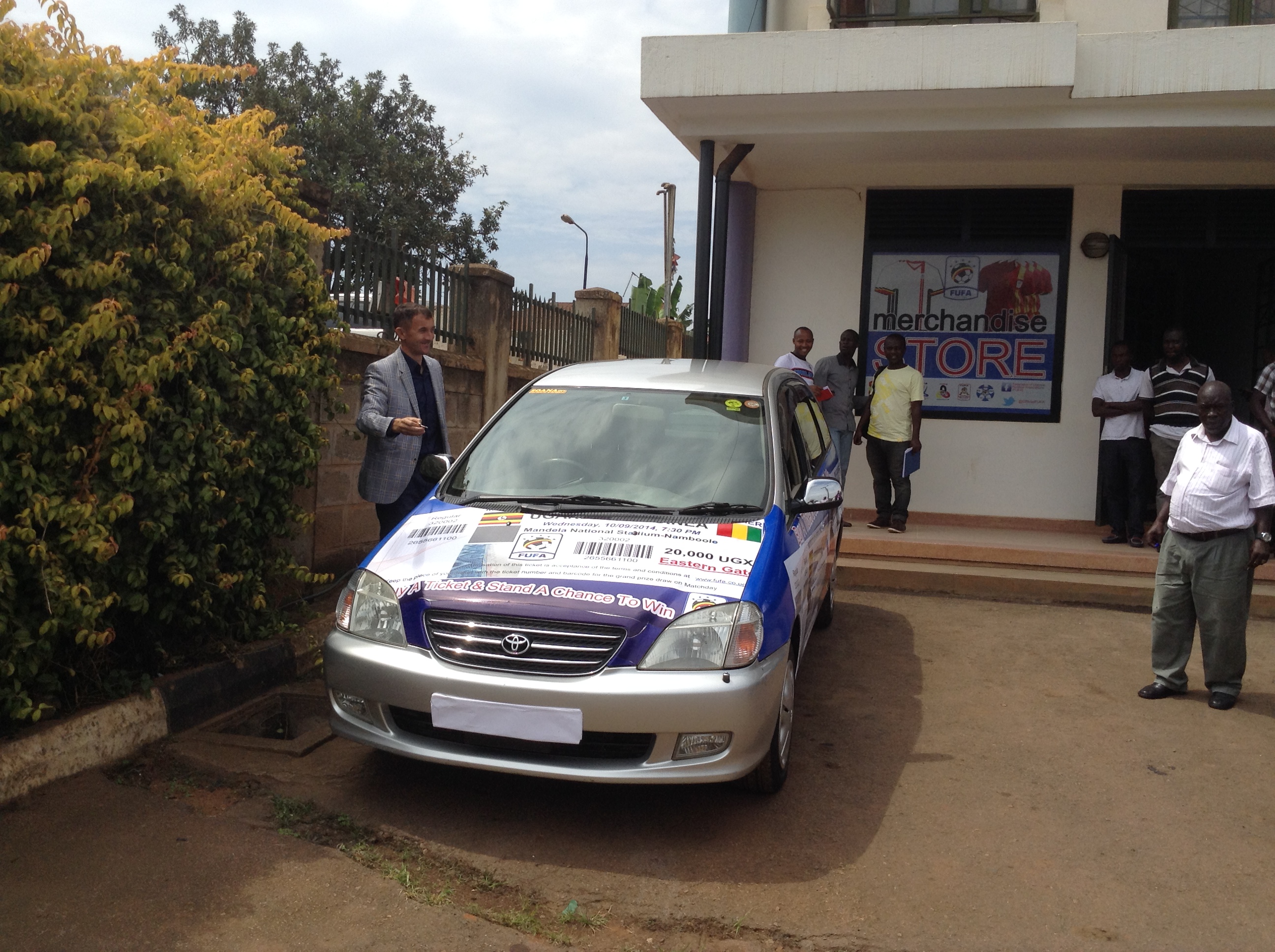 Photo: The Nadia car on display at FUFA House to be won by a lucky Uganda Cranes fan on 10th September, 2014.