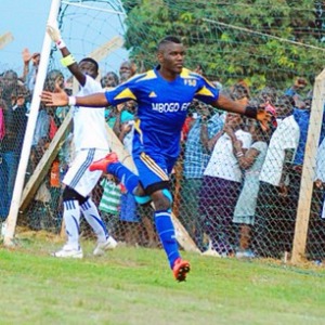 MAIN PHOTO: Nelson Senkatuka celebrates his strike for Mbogo Clan at Mityana Ssaza grounds during the 2014 Bika Bya Baganda finals.