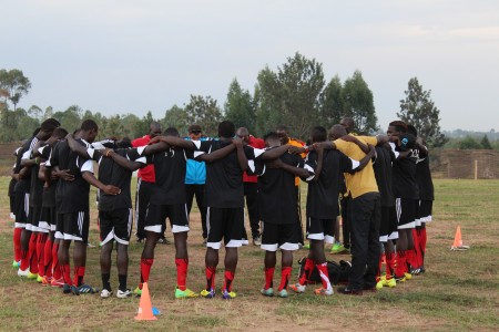 MAIN PHOTO: Uganda Cranes players pray before the start of their training session in Arua on Friday